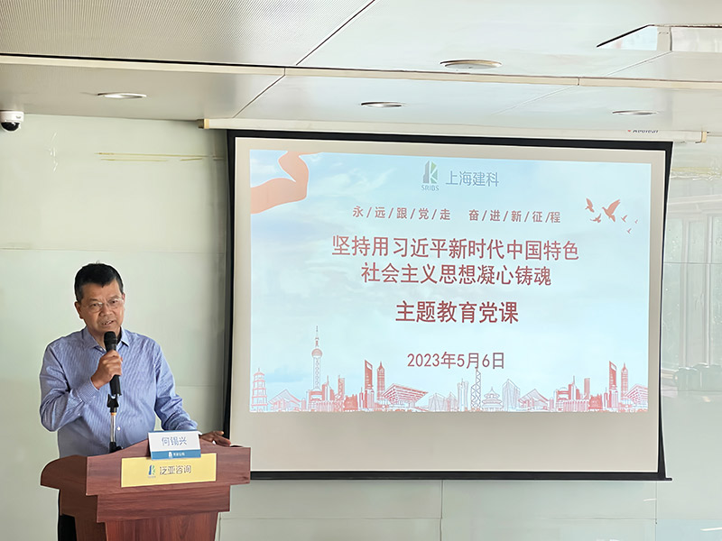按照建科集團黨委關于學習貫徹習近平新時代中國特色社會主義思想主題教育工作的統一部署,5月5日至6日,集團黨委委員、副總裁、天津咨詢董事長何錫興深入天津咨詢所屬泛亞公司開展調研,并為全體黨員講題為《堅持用習近平新時代中國特色社會主義思想凝心鑄魂》主題教育黨課。
