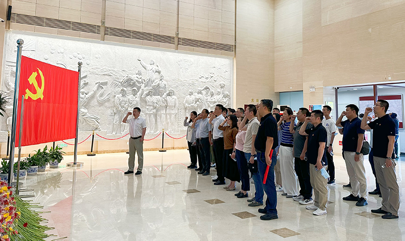 在紀念館內,公司黨委書記孫亞龍領誓,全體黨員在黨旗的見證下,重溫了對黨忠誠的錚錚誓言。
