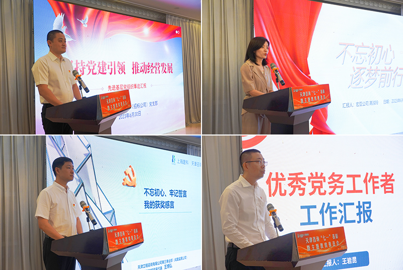 優秀共產黨員代表第一事業部(宏亞公司)高淑玲、第三事業部(成套監理公司)王博弘,優秀黨務工作者第二事業部(招標公司)王巖昆,先進基層黨組織天津咨詢第二事業部(招標公司)黨支部書記于浩鵬分別作了交流發言,表示將牢記初心使命,把榮譽作為新的起點,繼續發揮好黨組織戰斗堡壘和黨員先鋒模范作用,為推動天津咨詢高質量發展作出新的貢獻。