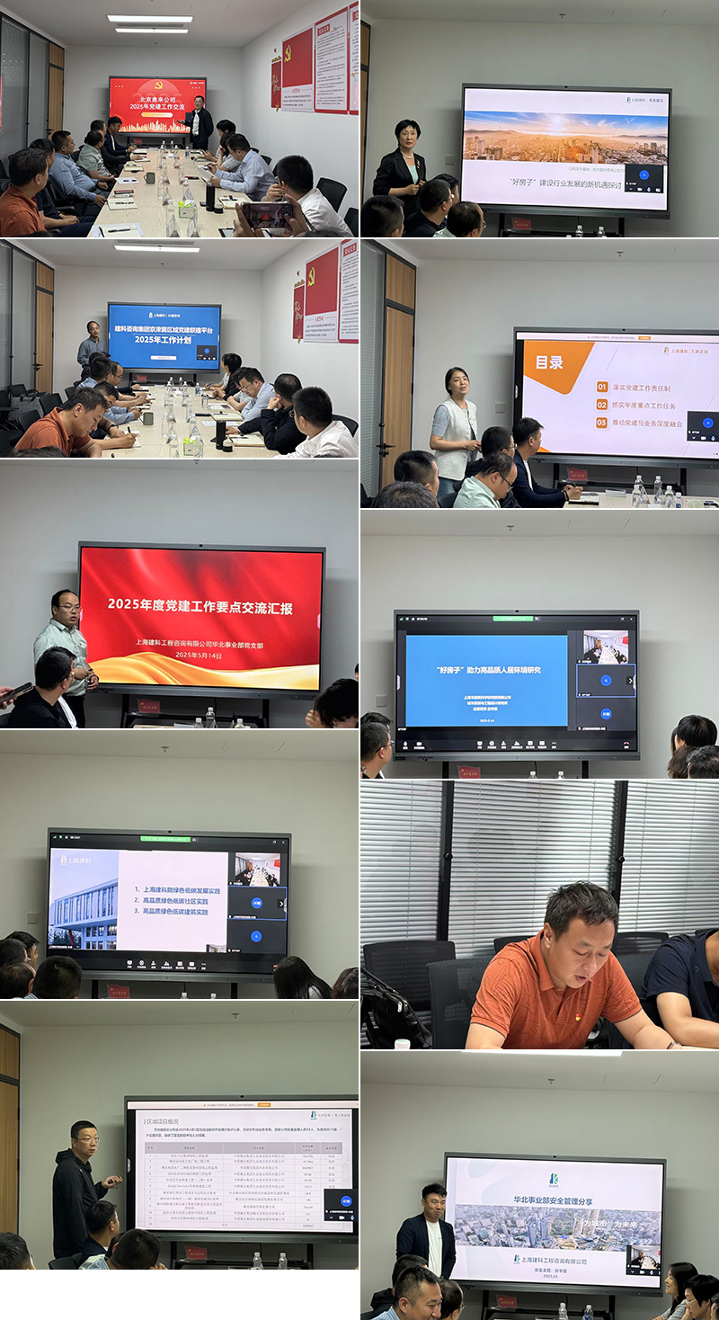 2025年5月14日,上海建科咨詢集團(tuán)京津冀區(qū)域化黨建聯(lián)建平臺(tái)組織京津冀區(qū)域有關(guān)機(jī)構(gòu)在雄安開(kāi)展“黨業(yè)融合聚合力質(zhì)效提升促發(fā)展”主題實(shí)踐學(xué)習(xí)交流活動(dòng)。天津咨詢黨委書記孫亞龍,集團(tuán)華北區(qū)域管理中心常務(wù)副主任瞿新麗,天津咨詢、北京奧來(lái)、建科咨詢?nèi)A北事業(yè)部相關(guān)人員、黨務(wù)部門負(fù)責(zé)人、分公司經(jīng)理、項(xiàng)目經(jīng)理、總監(jiān)等參加會(huì)議。建科院城更所、建科院低碳院綠建部應(yīng)邀線上參會(huì)。會(huì)議由天津咨詢黨委書記孫亞龍主持。