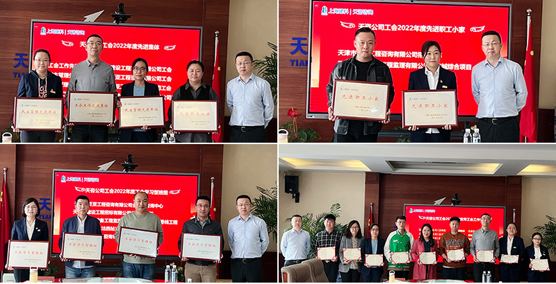 會議表彰了天咨公司工會2022年度工會積極分子、優(yōu)秀工會工作者、先進職工小家、工會學習型班組、先進職工之家、民主管理先進單位、工會工作先進集體,并進行頒獎。