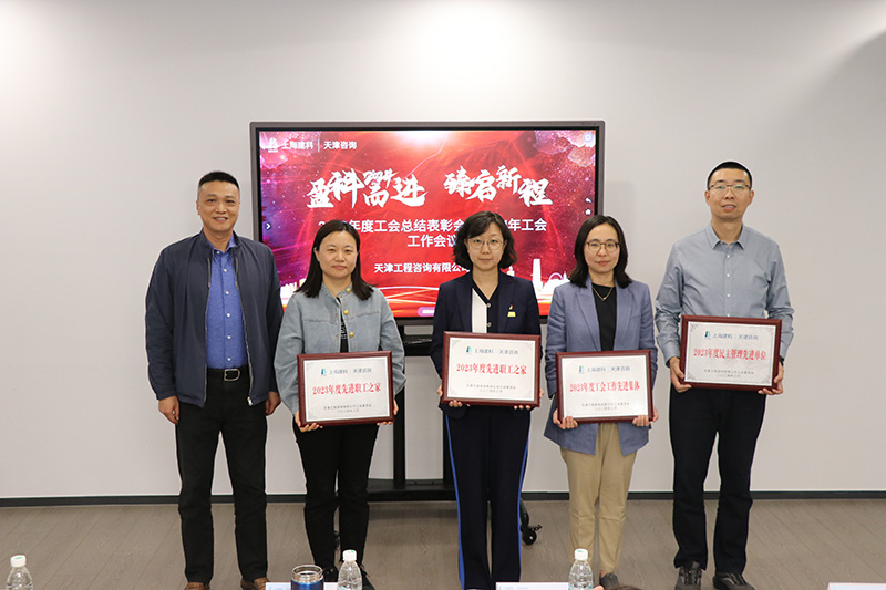 會議首先對天津咨詢工會2023年工作進行了總結,對2024年重點工作進行了動員部署,通報了天津咨詢工會榮獲上海建科集團工會2023年度的獲獎情況,宣讀了天津咨詢工會2023年度先進集體、先進個人的獲獎情況,并進行了頒獎。