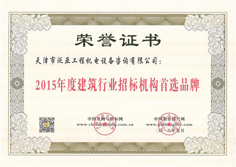 2015年度建筑行業(yè)招標機構首選品牌